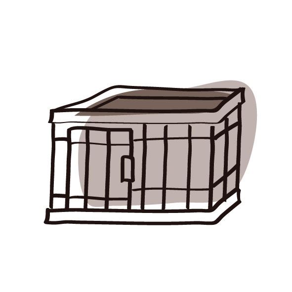 オススメ:天井付き / ハードタイプ / 広すぎず狭すぎず(お座りで頭が当たらず、余裕で寝転がれる)